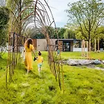 Recreatiewoning 'Steenpatrijs' s venkovním plaveckým bazénem s 2 ložnicemi je vybavena terasou s výhledem na zahradu. Tato vila je umístěna ve městě Voorthuizen, 7 km od Oktober 1944.